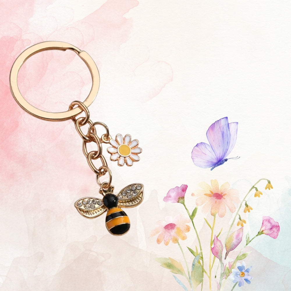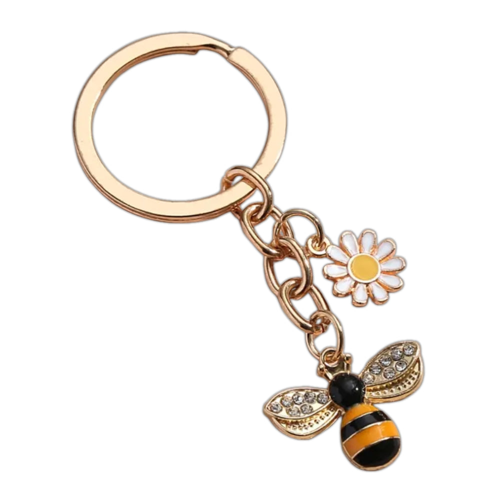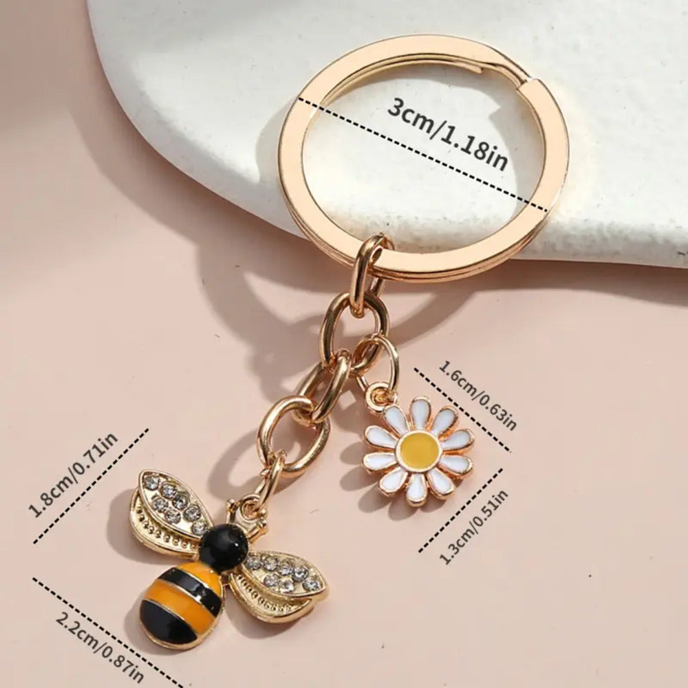 Bee Honey Daisy Charm Rhinestone Keyring Bee Lovers Metal Keychain Gift For Friend Mother Aunt Daughter Niece Grandma For Birthday Special Occasion