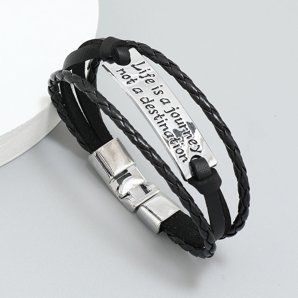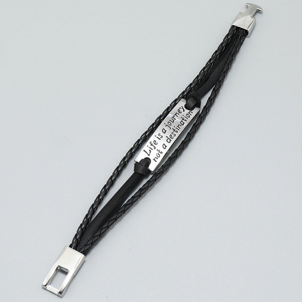 PU Leather Boho Engraved Life Is A Journey Not A Destination Bangle Bracelet Gothic Steampunk Bohemian Unisex Wristband