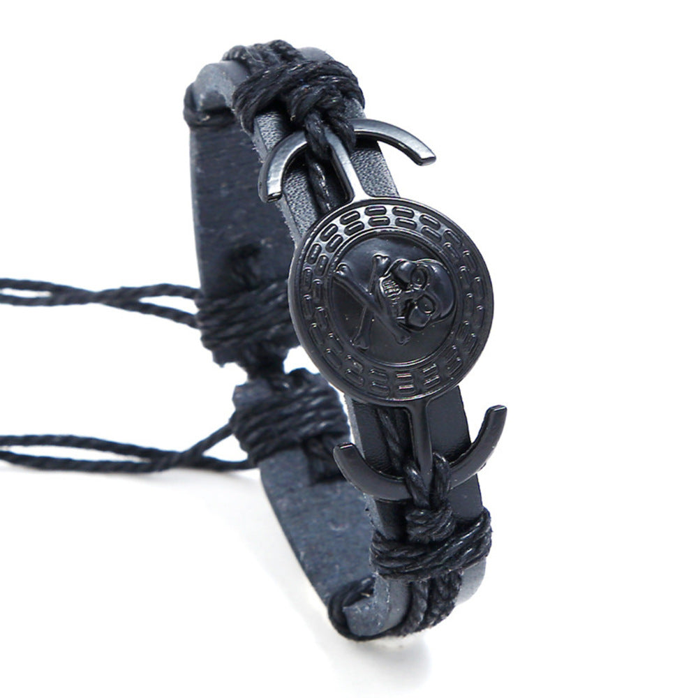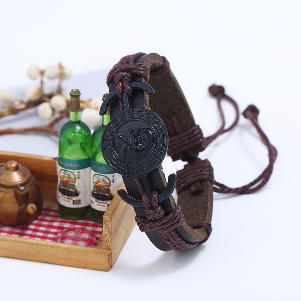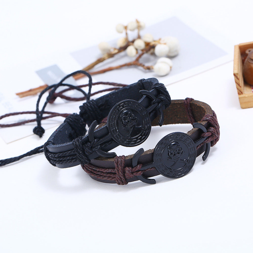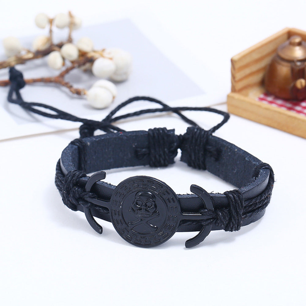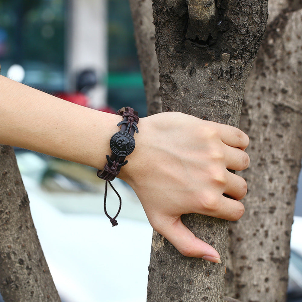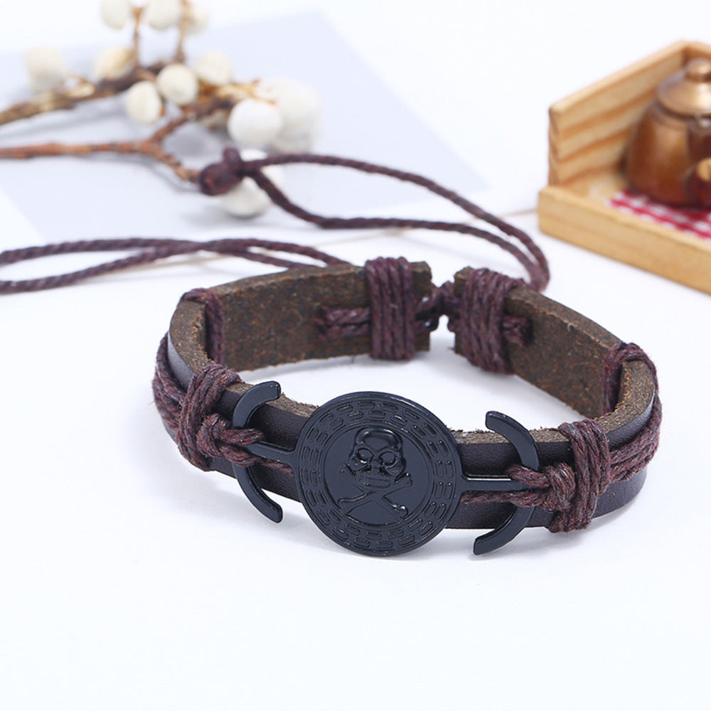 PU Leather Adjustable Punk Style Skull Braided Bracelet Bangle For Gothic Steampunk Bohemian Unisex Wristband