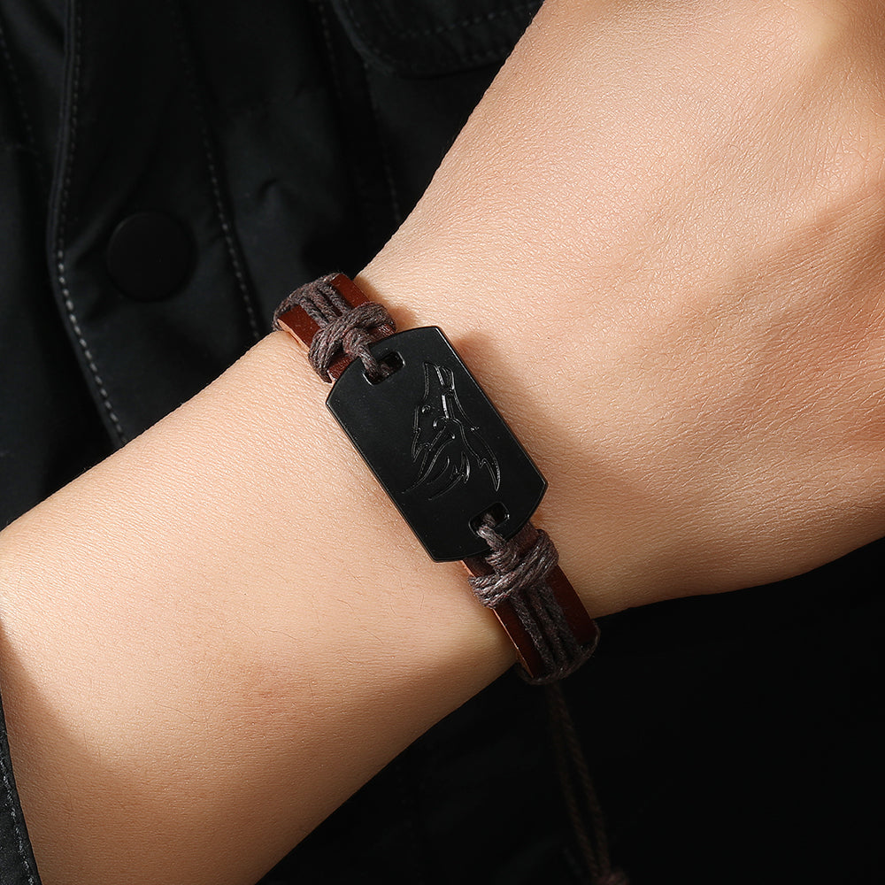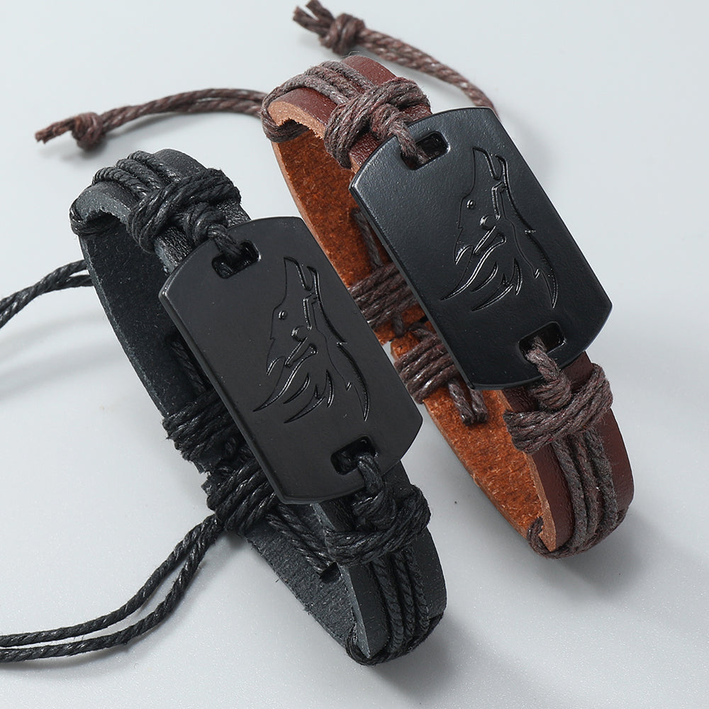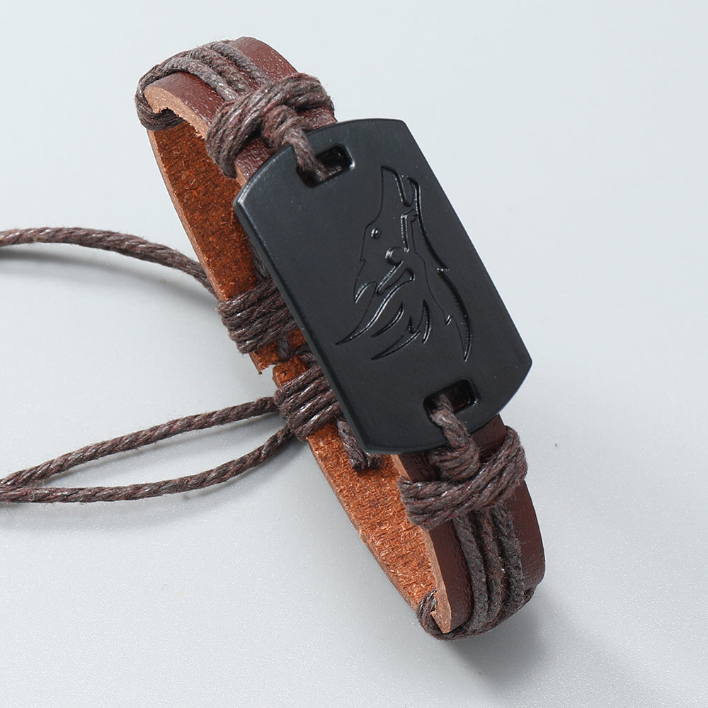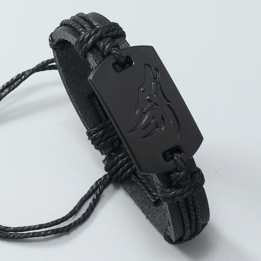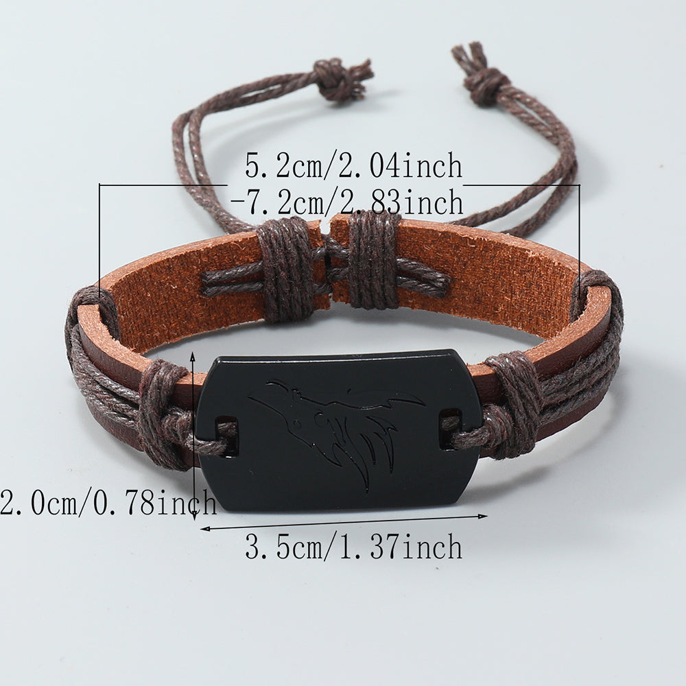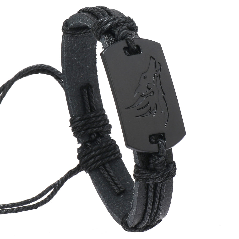 PU Leather Adjustable Punk Style Wolf Howl Braided Bracelet Bangle Gothic Steampunk Bohemian Unisex Wristband