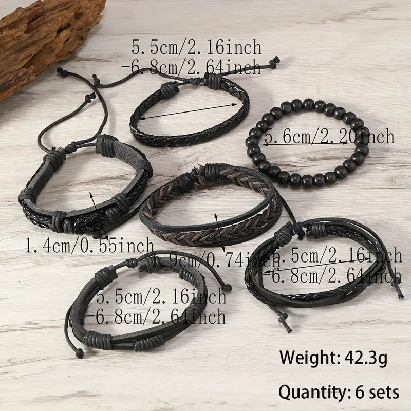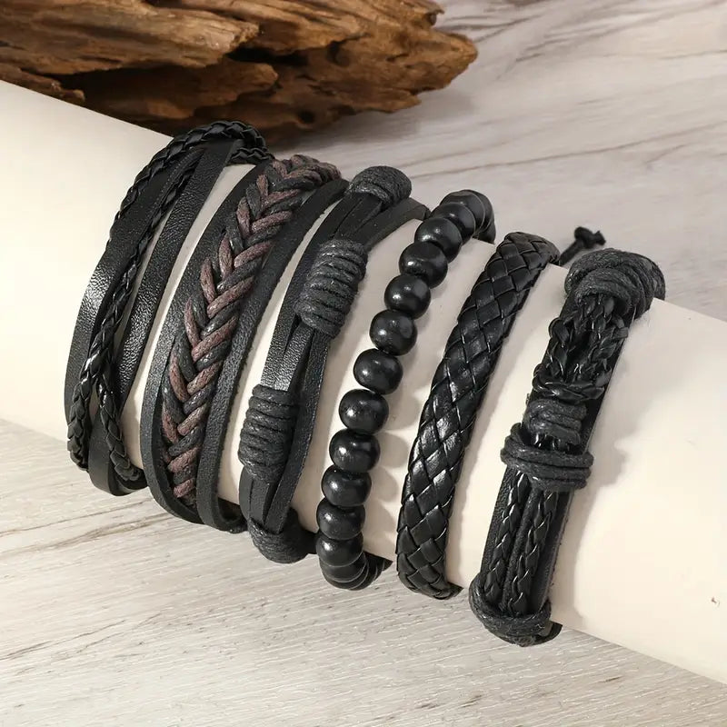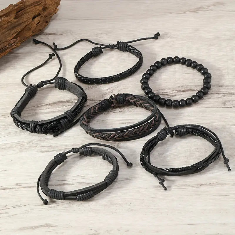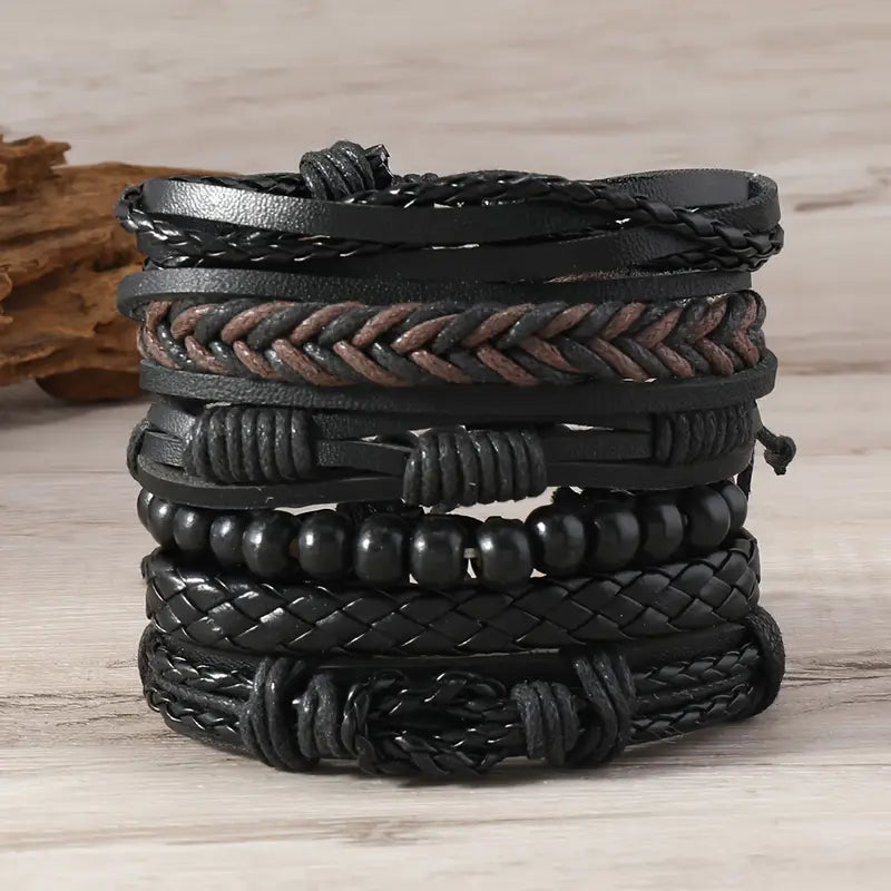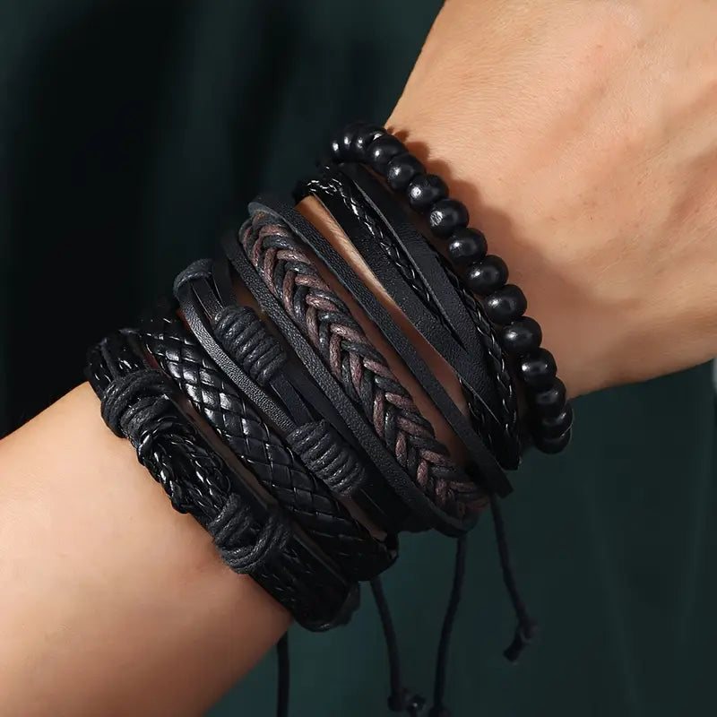 Men's PU Leather Woven Beaded Vintage Multi-Layered Bracelet Set Gothic Steampunk Bohemian Unisex Wristband