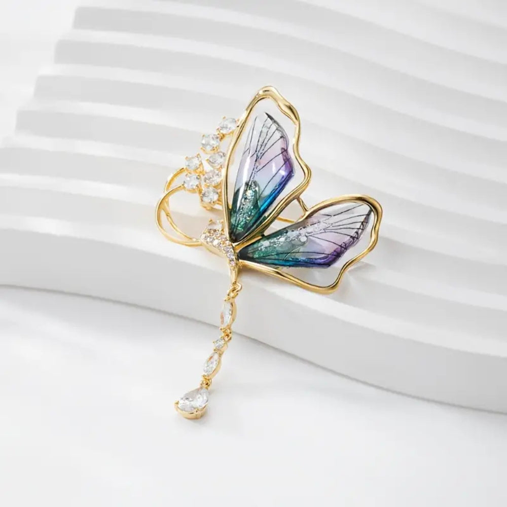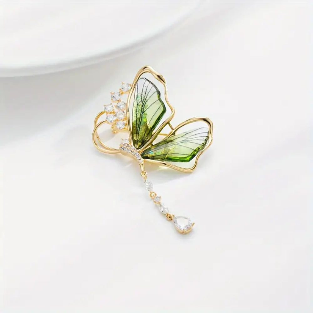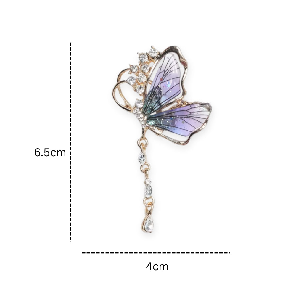 Butterfly Rhinestone Gems Inlaid Brooch Pin Elegant Clothing Lapel Pin 4 x 6.5cm