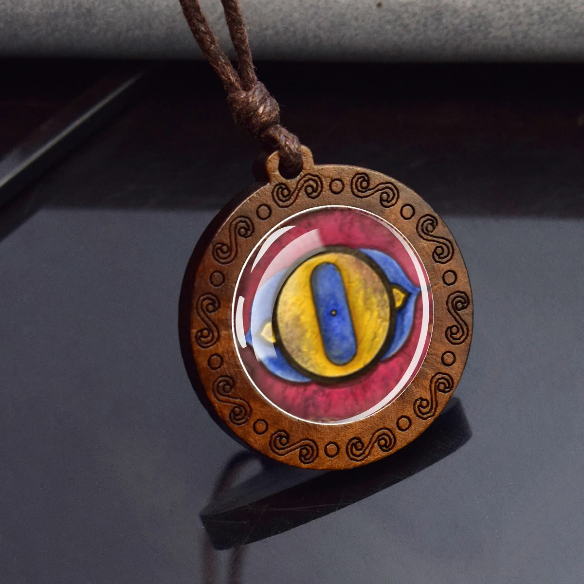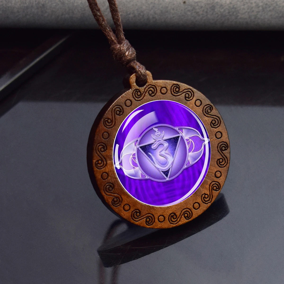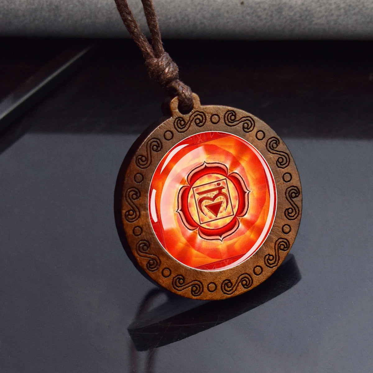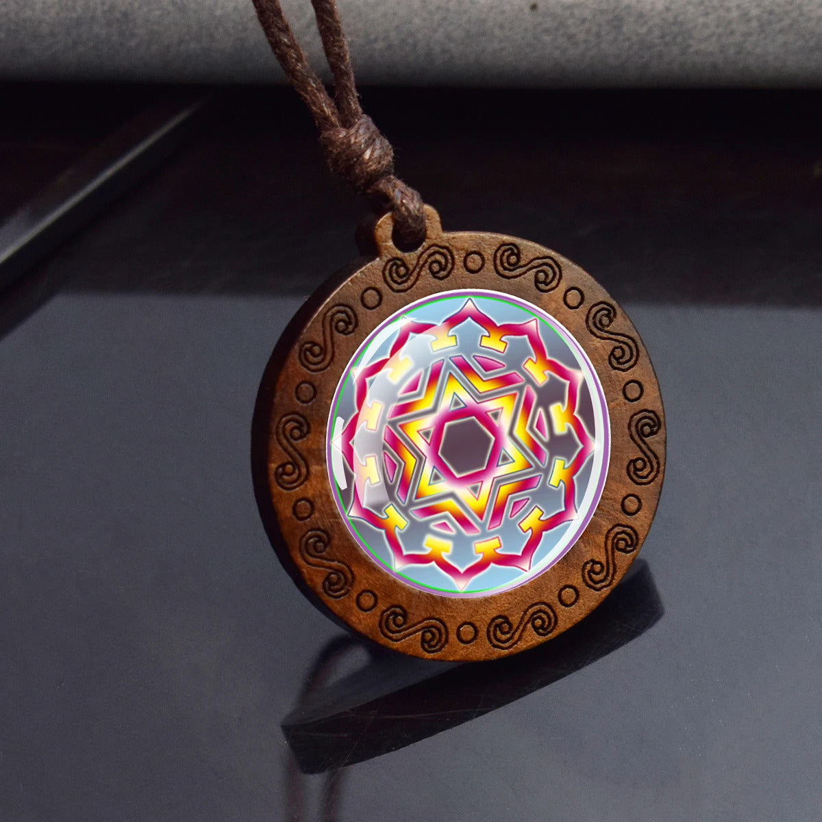 Boho Chakra Mandala Buddha Ethnic Spiritual Wooden Pendant Encased Glass Dome Bohemian Unisex Necklace Adjustable 45-86cm