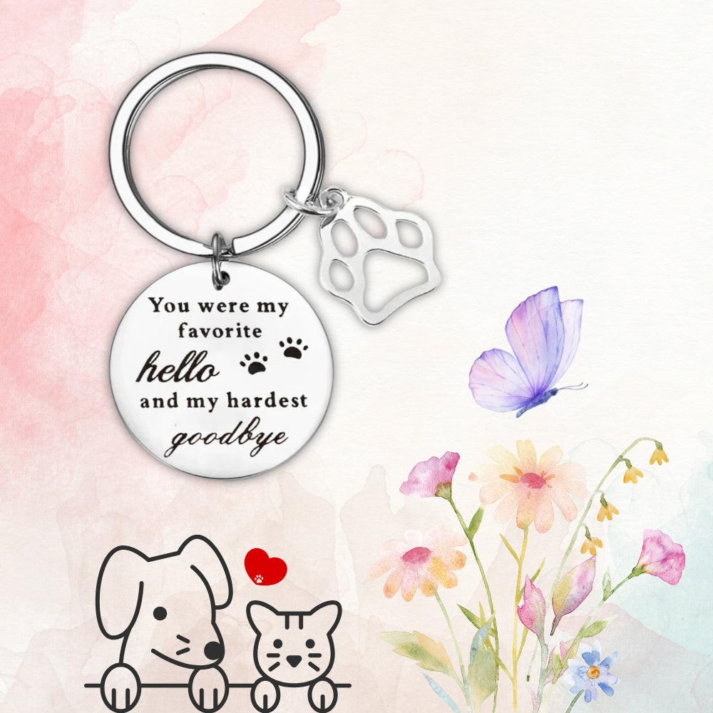 Pet Memorial Keychain Engraved Paw Charm Gift Loss Of Dog Cat Keyring Keepsake For Loss Of Pet Bereavement Sympathy Remembrance V2