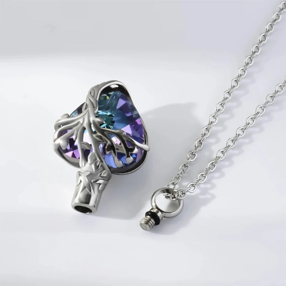Tree Of Life Rhinestone Crystal Cremation Urn Necklace Pendant Ashes Memorial Locket Keepsake Gift For Loss Of Loved One Bereavement Sympathy Remembrance