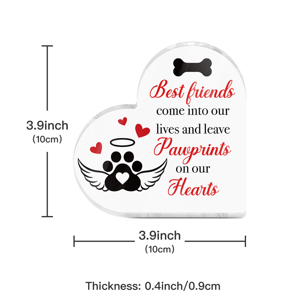 Pawprints On Your Heart Memorial Pet Dog Heart-Shaped Block Acrylic Plaque Gift Free-Standing Sign Keepsake For Loss of Pet Bereavement Sympathy Remembrance In Memory of Dog Passed Away