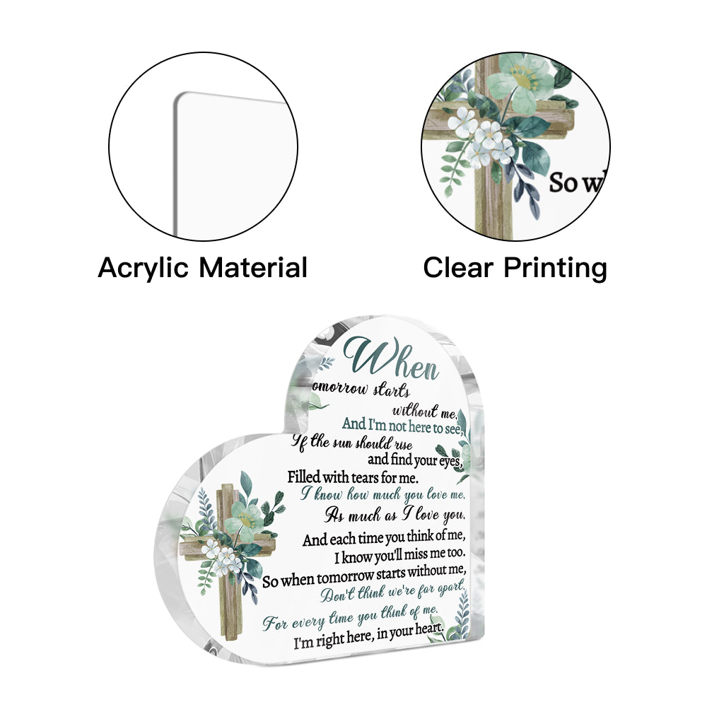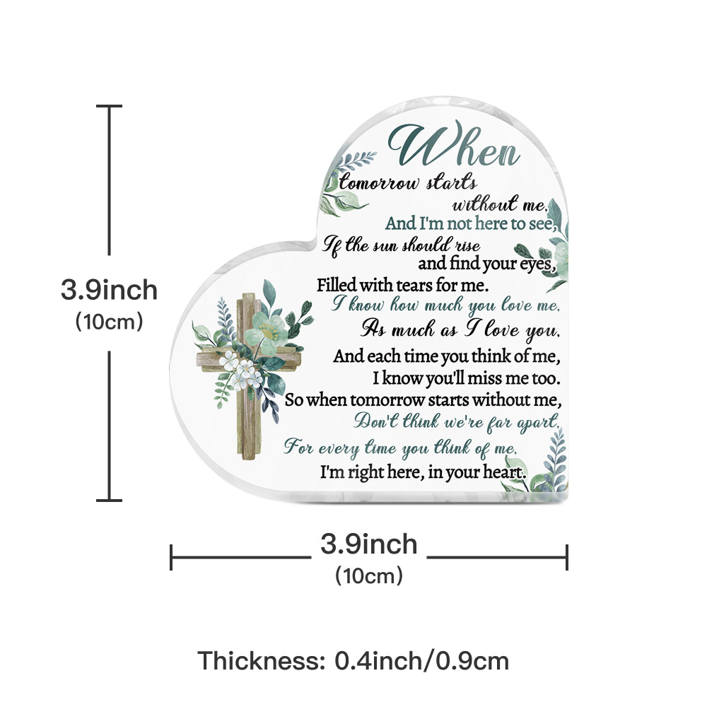 When Tomorrow Starts Without Me Memorial Acrylic Plaque Heart-Shaped Block Gift Free-Standing Sign Keepsake For Loss Of Loved One Bereavement Sympathy Remembrance