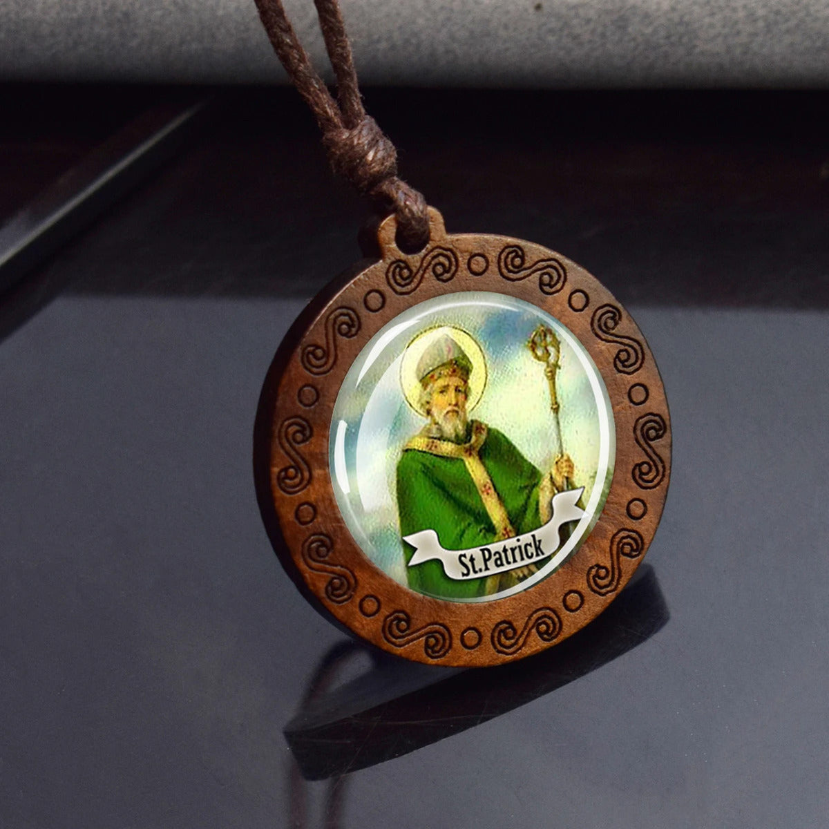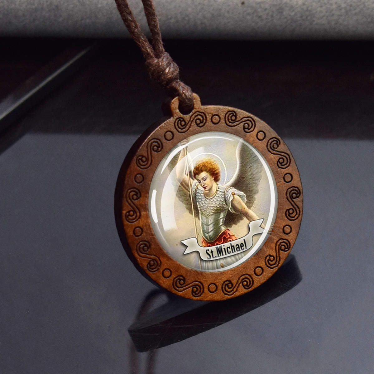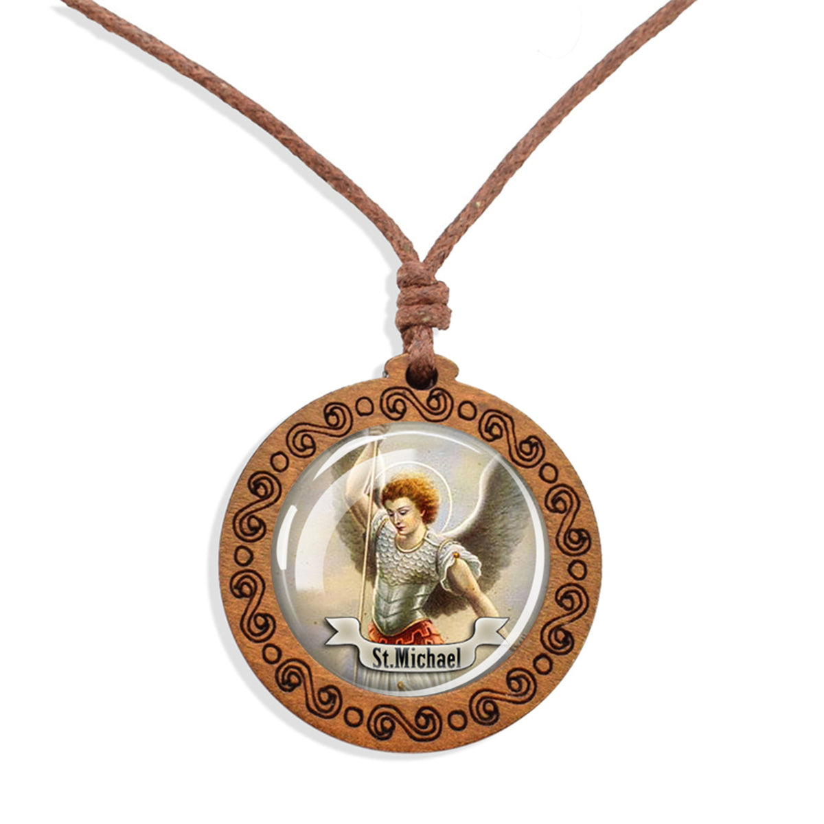 • Each pendant is crafted with care, combining the warm, organic feel of wood with an eye-catching, colorful saint illustration. Whether you're drawn to St. Michael’s protection, St. Therese’s gentleness, or St. Patrick's guidance, there's a pendant that speaks to your heart or makes the perfect gift of faith.