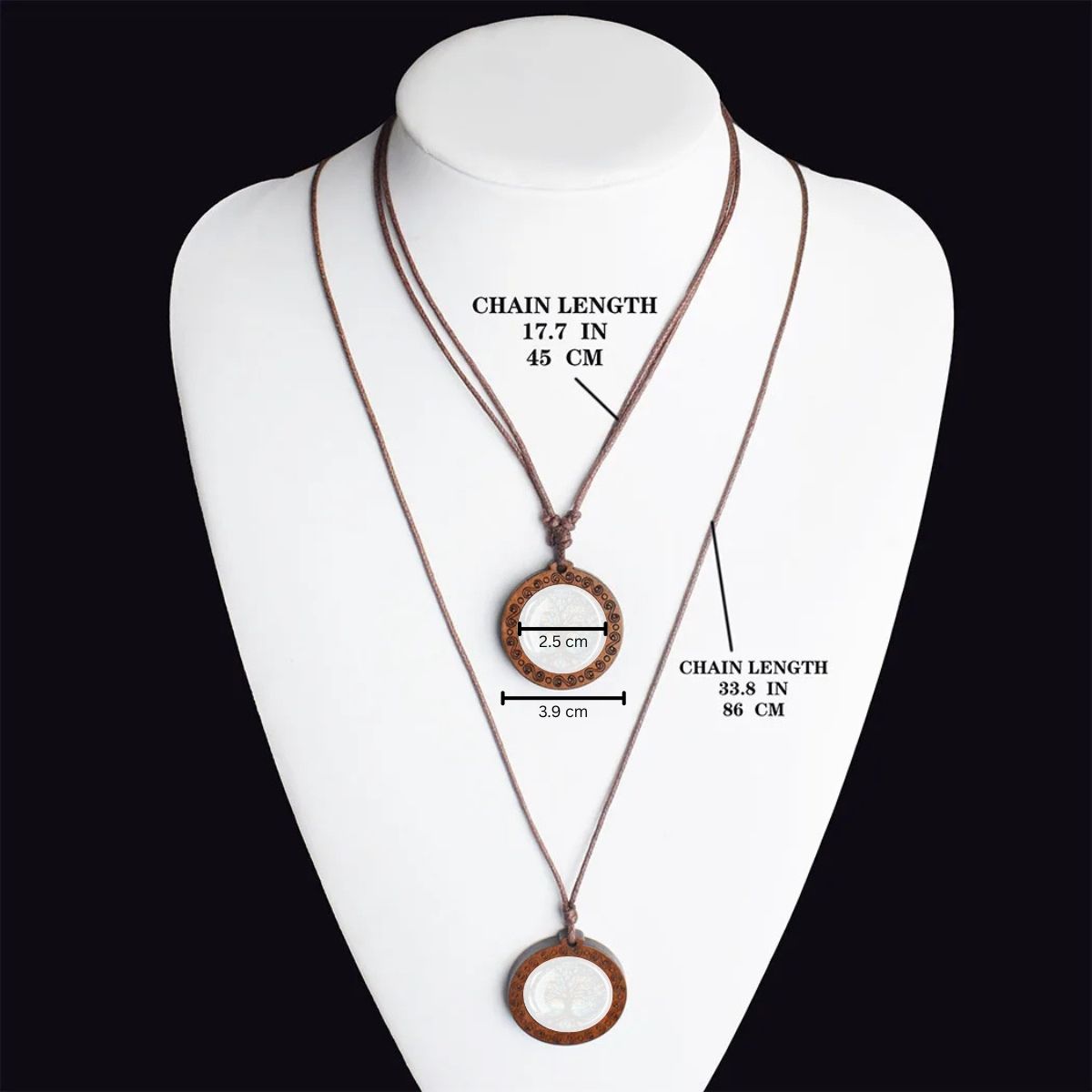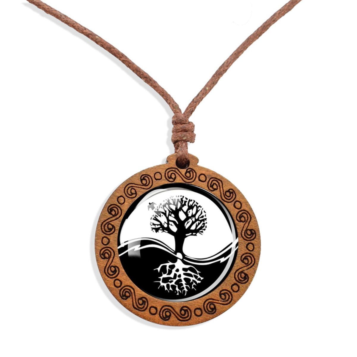 Boho Yin Yang Tree Of Life Ethnic Spiritual Wooden Pendant Encased Glass Dome Bohemian Unisex Necklace Adjustable 45-86cm