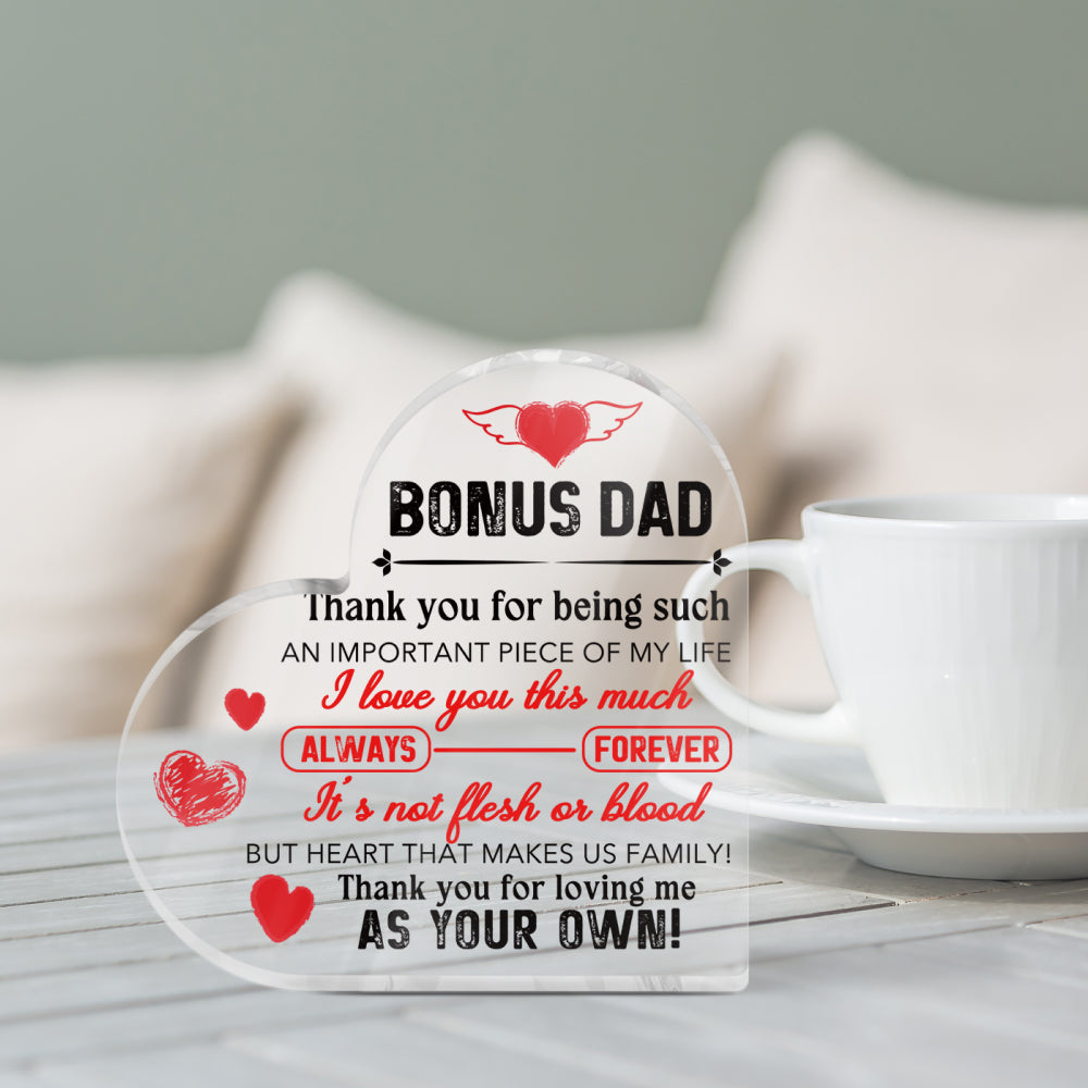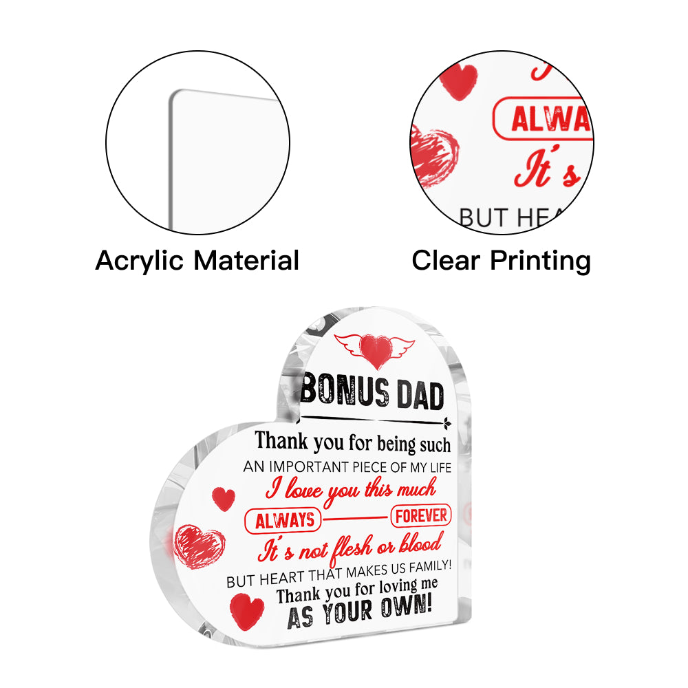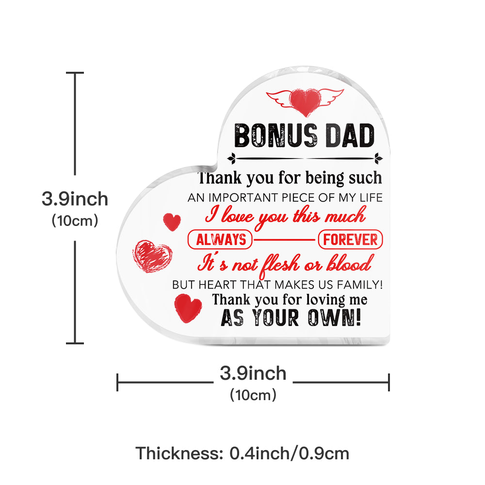 Bonus Dad Thank You For Being In My Life Heart-Shaped Block Acrylic Plaque Gift Free-Standing Sign Keepsake For Dad Father Stepfather For Birthday Father's Day Special Occasion