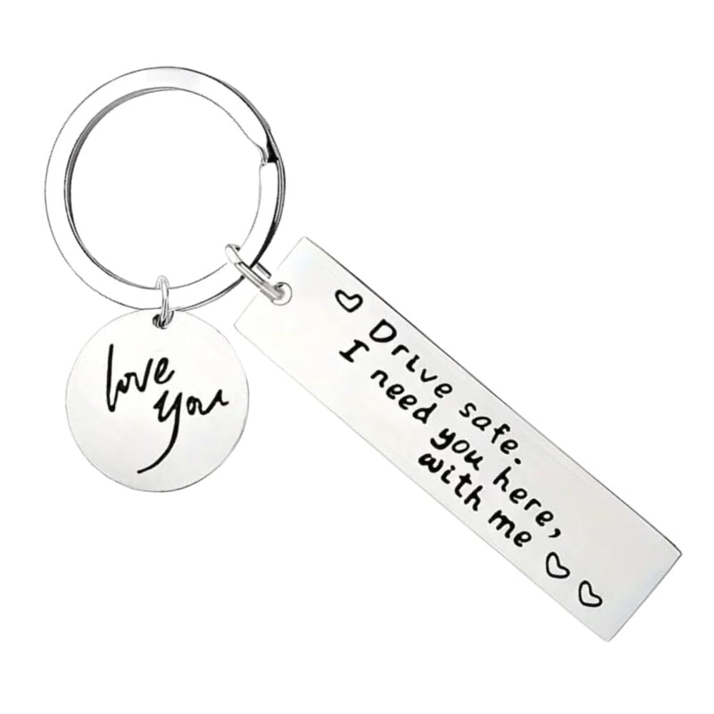 • The keyring bears the touching message "Drive Safe, I Need You Here With Me." It's a loving reminder that safety matters, and the presence of your dear one is deeply cherished. Every time they grab their keys, they'll be reminded of your love.