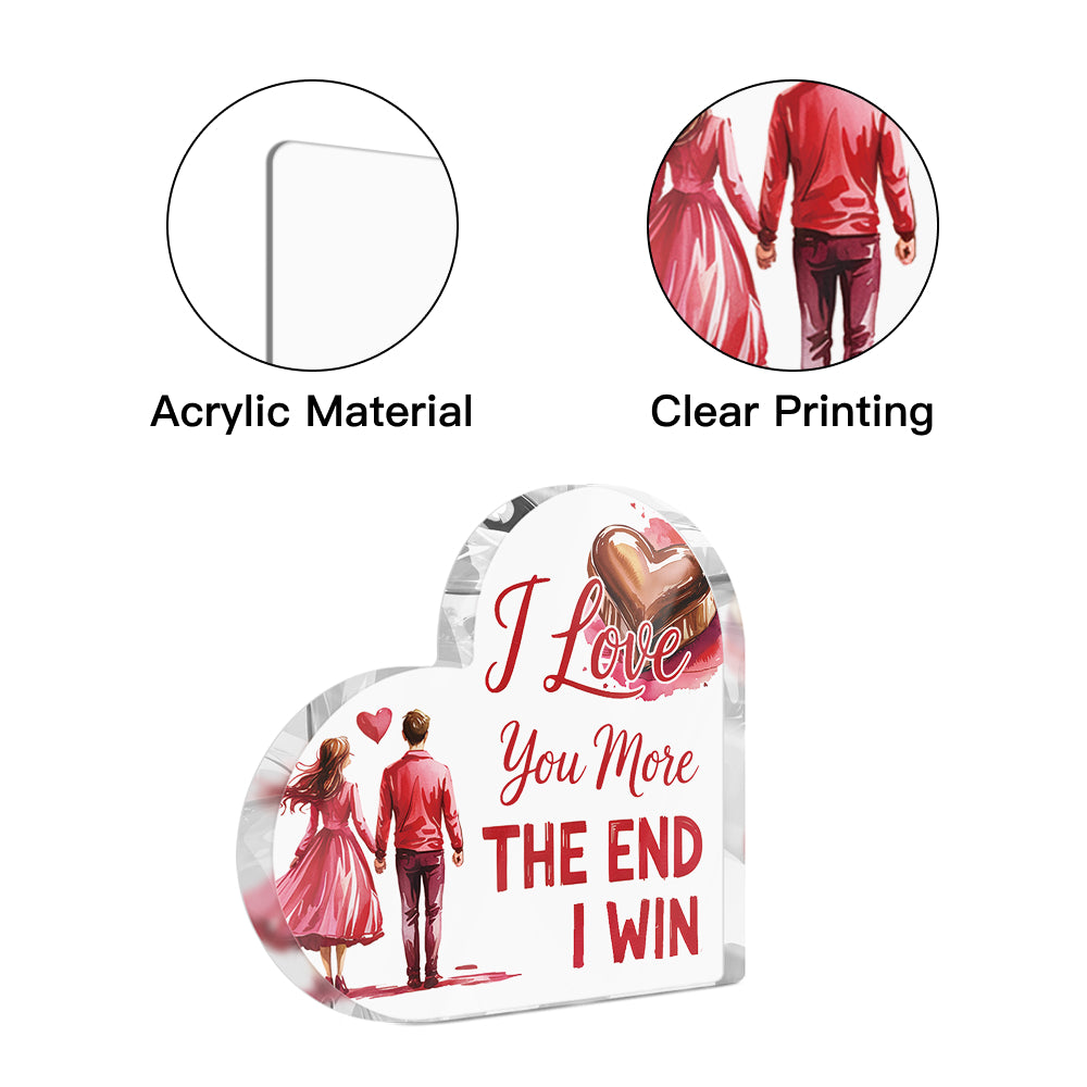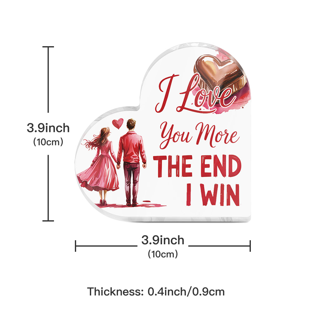 I Love You More The End I Win Heart Acrylic Plaque Heart-Shaped Block Gift Free-Standing Sign Keepsake For Girlfriend Boyfriend Partner Couples For Birthday Valentine's Day Anniversary
