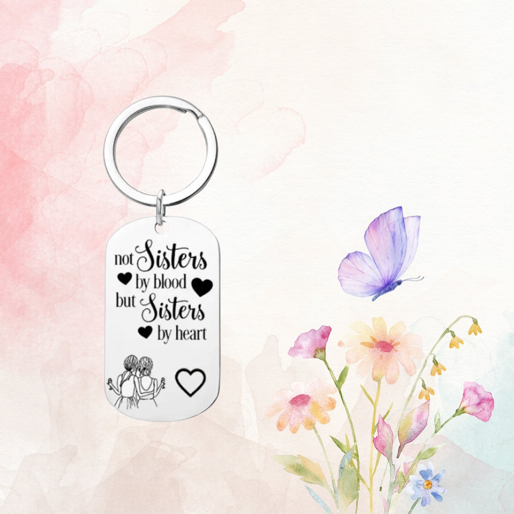 Not Sisters By Blood But Sisters By Heart Engraved Keychain Gift For BFF Best Friend Bestie Friendship For Birthday Friendship Day