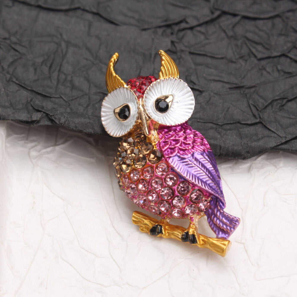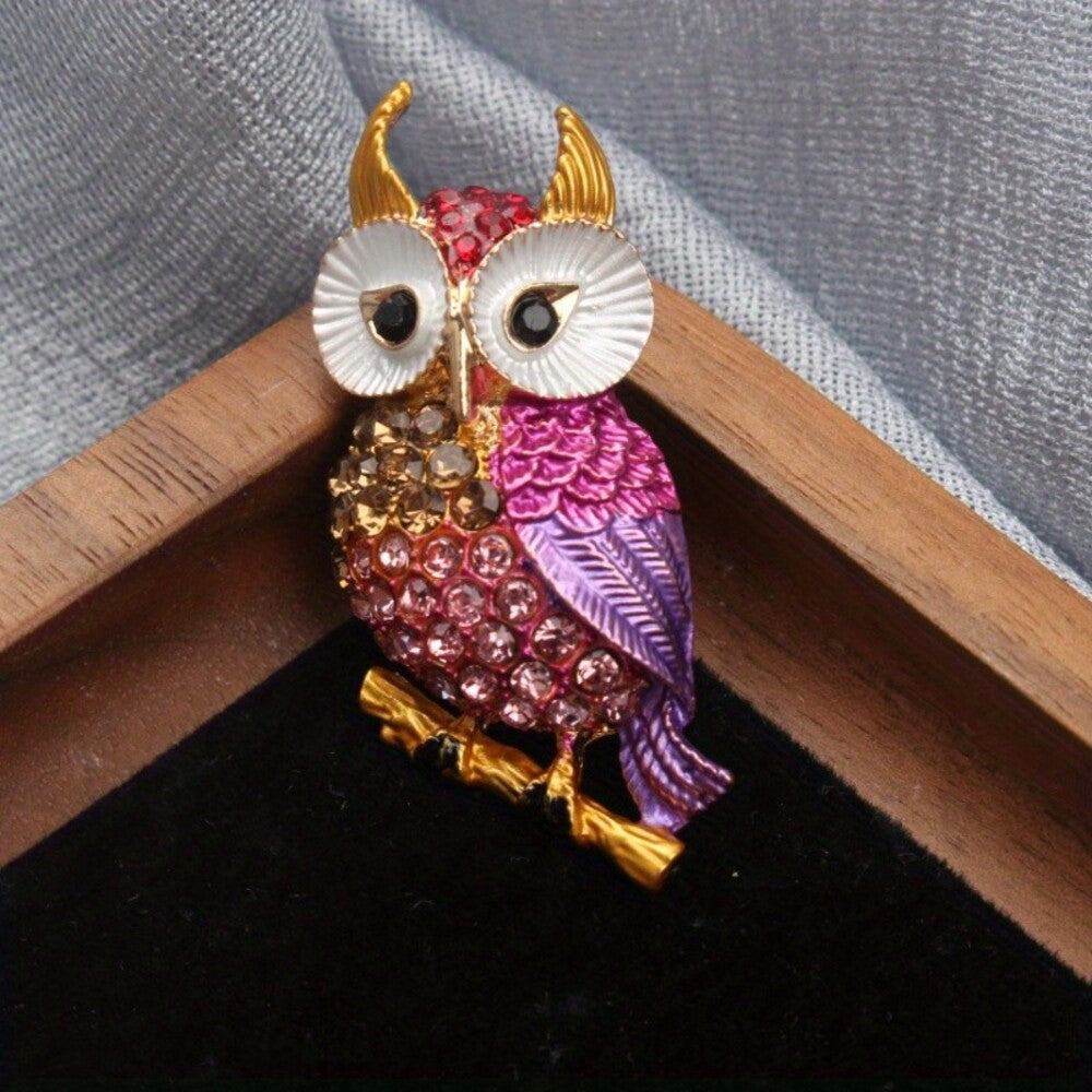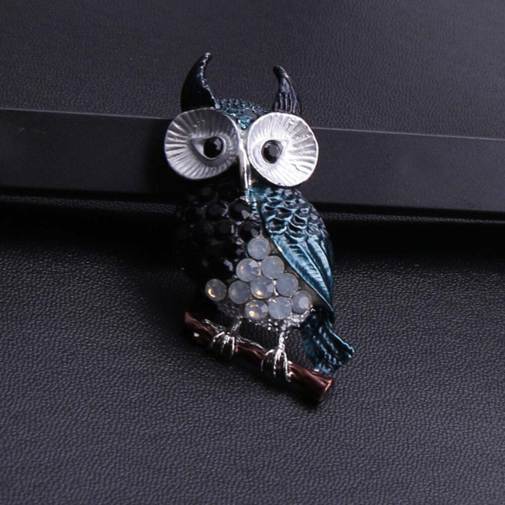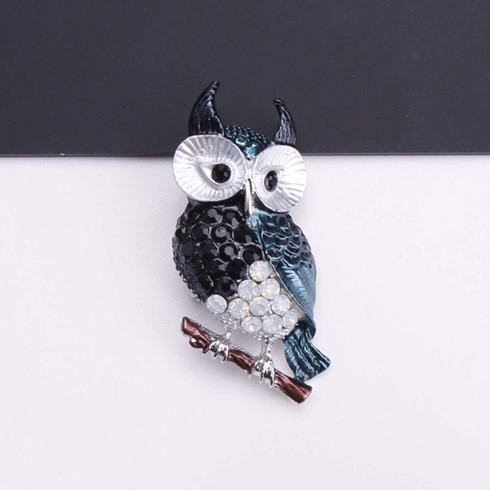 Owl On A Branch Brooch Elegant Inlaid Rhinestone Animal Lapel Pin For Women Blouse Dress Coat Scarf Brooch