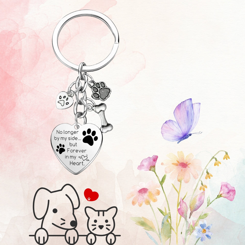 Pet Dog Paws Keychain Memorial Stainless Steel Keyring No Longer By My Side Loss Of Dog Keyring Keepsake For Loss Of Pet Bereavement Sympathy Remembrance