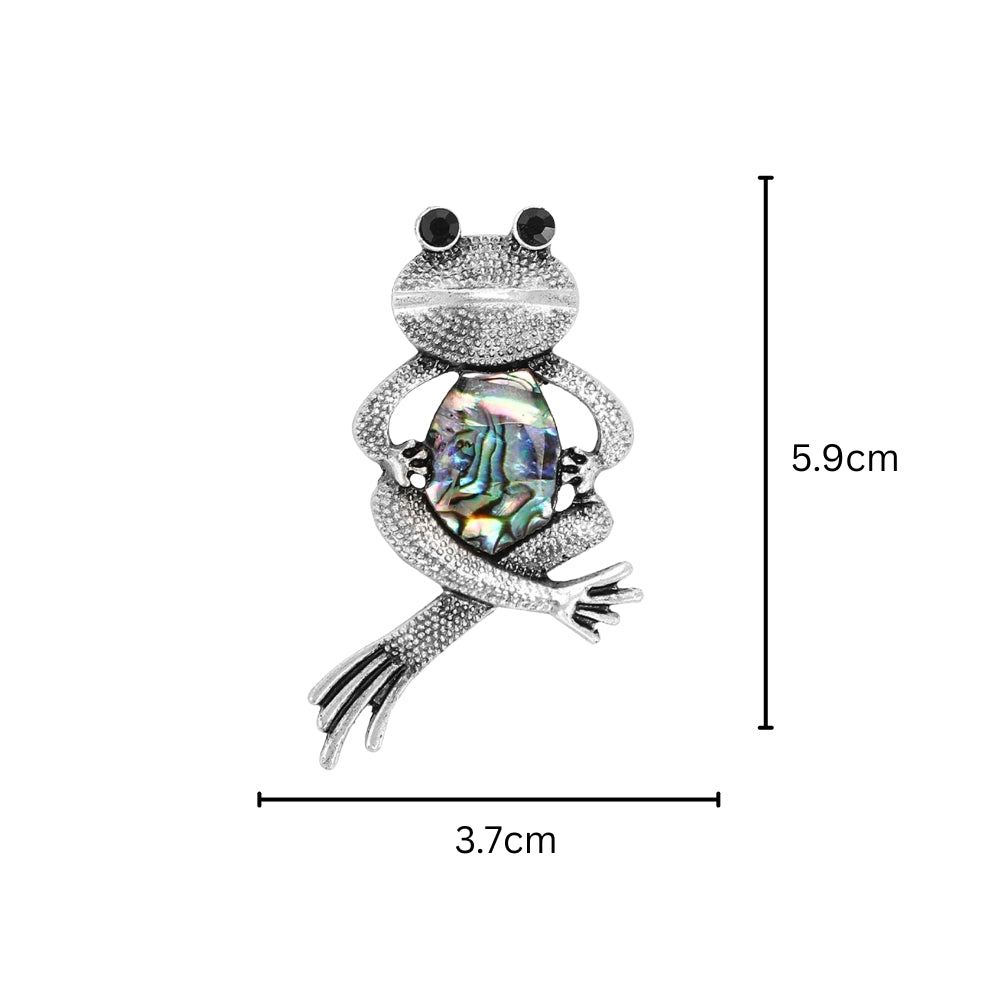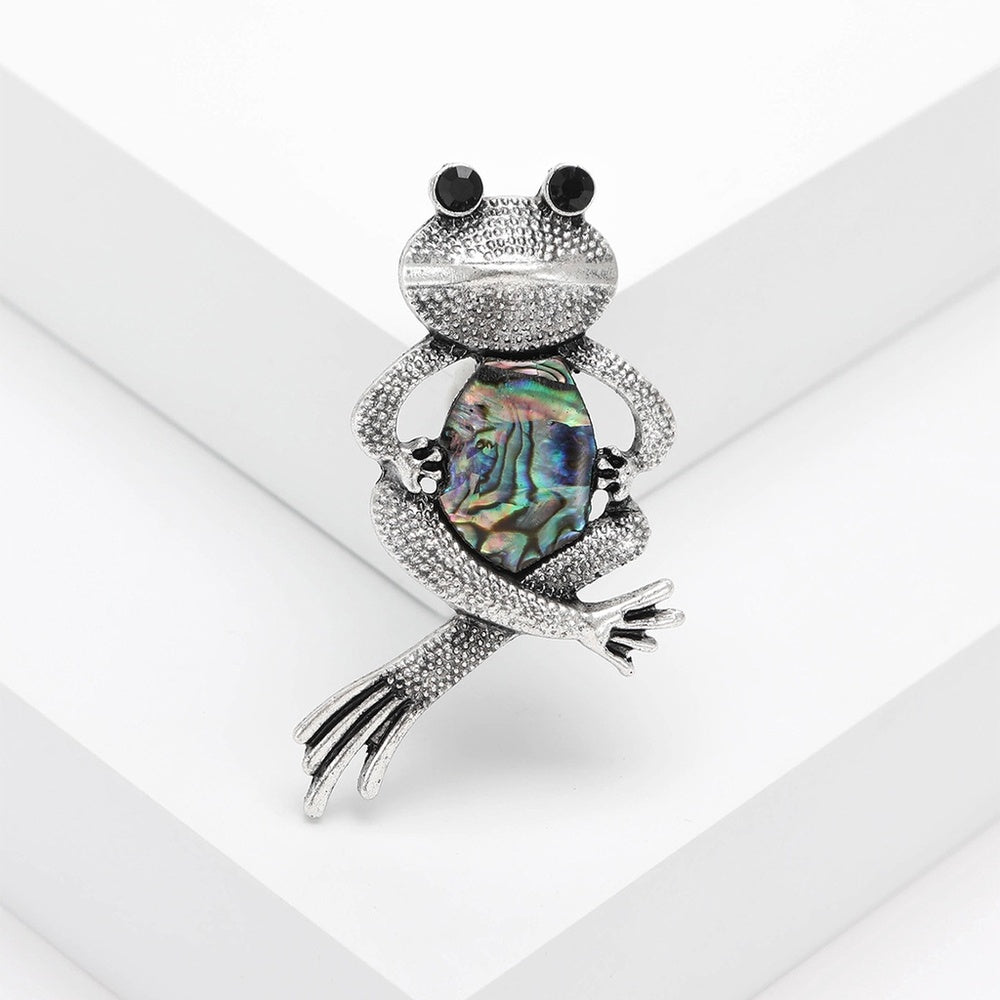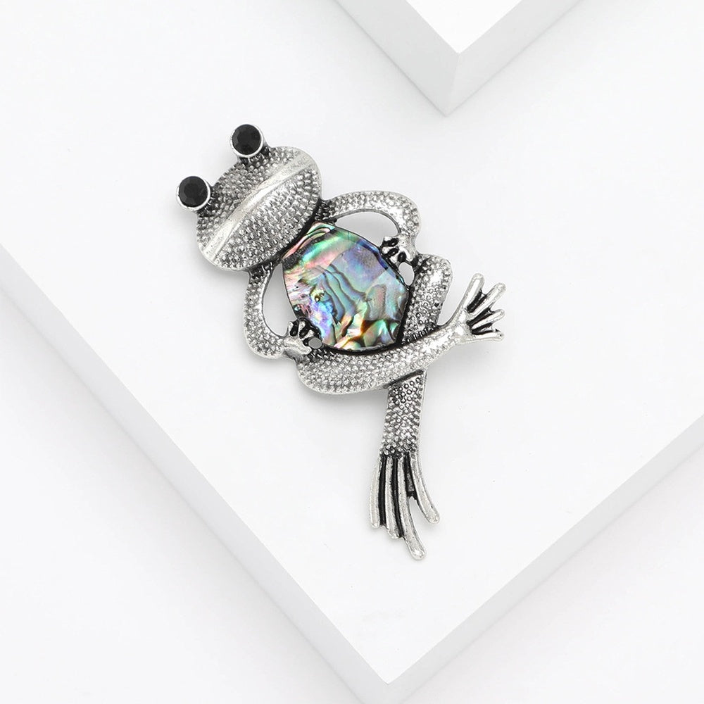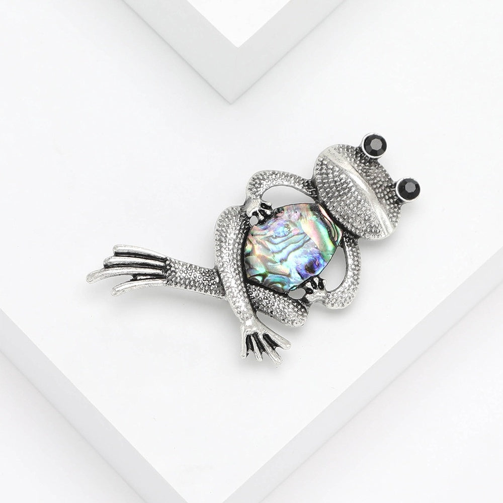 Silver Frog Opal Brooch Elegant Inlaid Rhinestone Animal Lapel Pin For Women Blouse Dress Coat Scarf Brooch