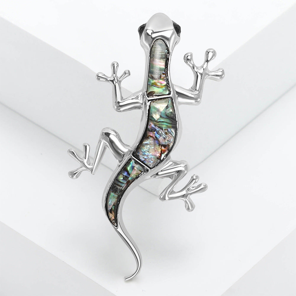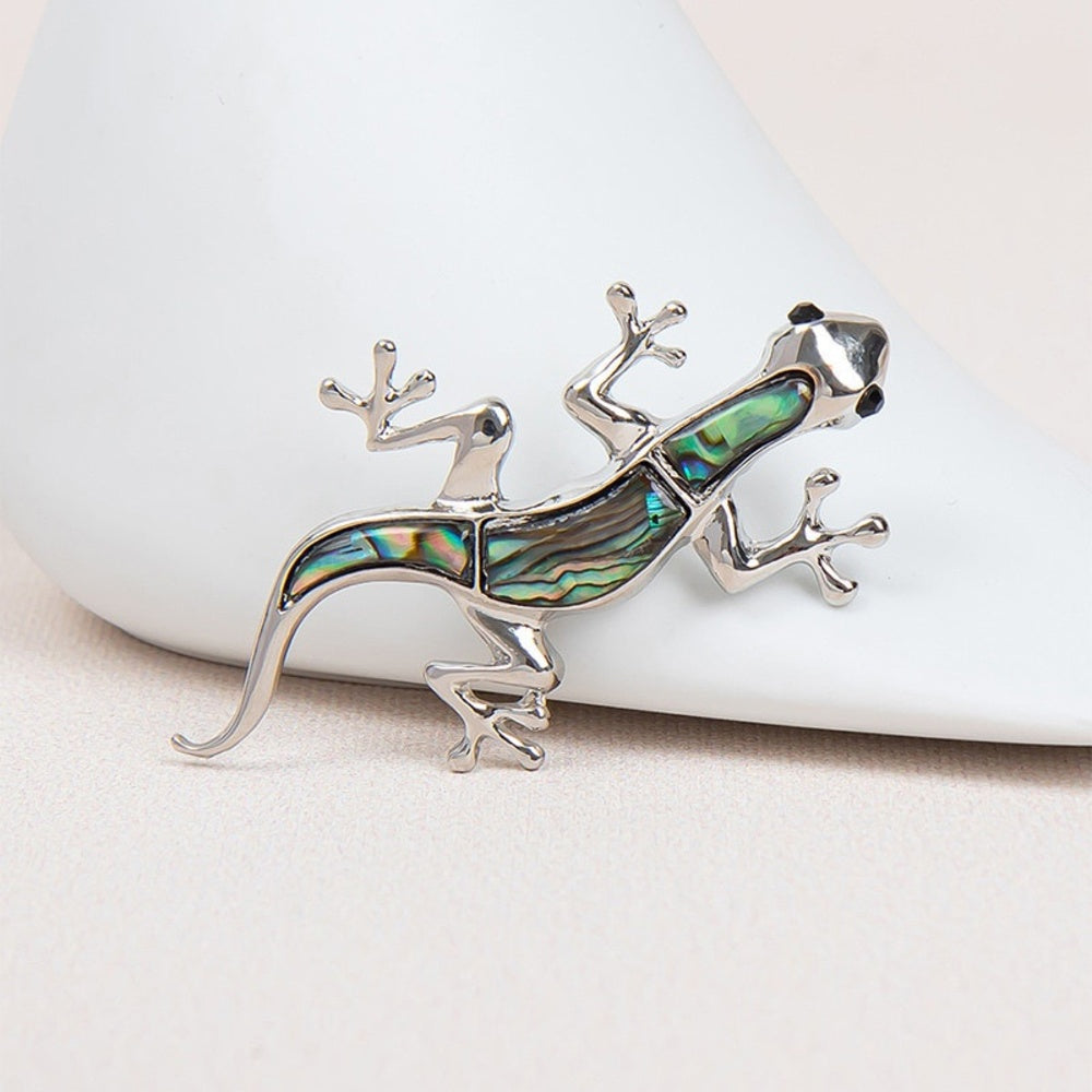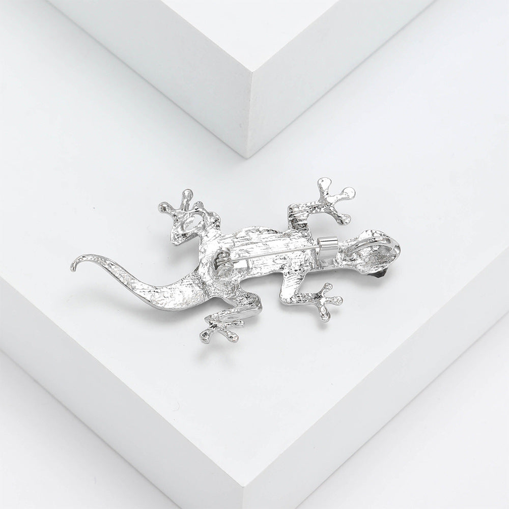 Silver Lizard Opal Brooch Elegant Inlaid Rhinestone Animal Lapel Pin For Women Blouse Dress Coat Scarf Brooch