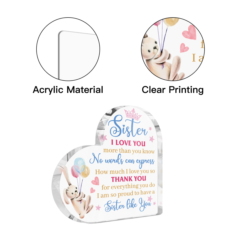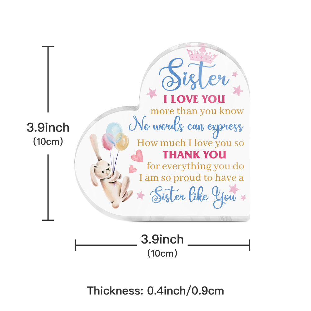 Sister I Love You More Than You Know Acrylic Plaque Heart-Shaped Block Gift Free-Standing Sign Keepsake For Best Sis Older Younger Sister For Birthday Special Occasion