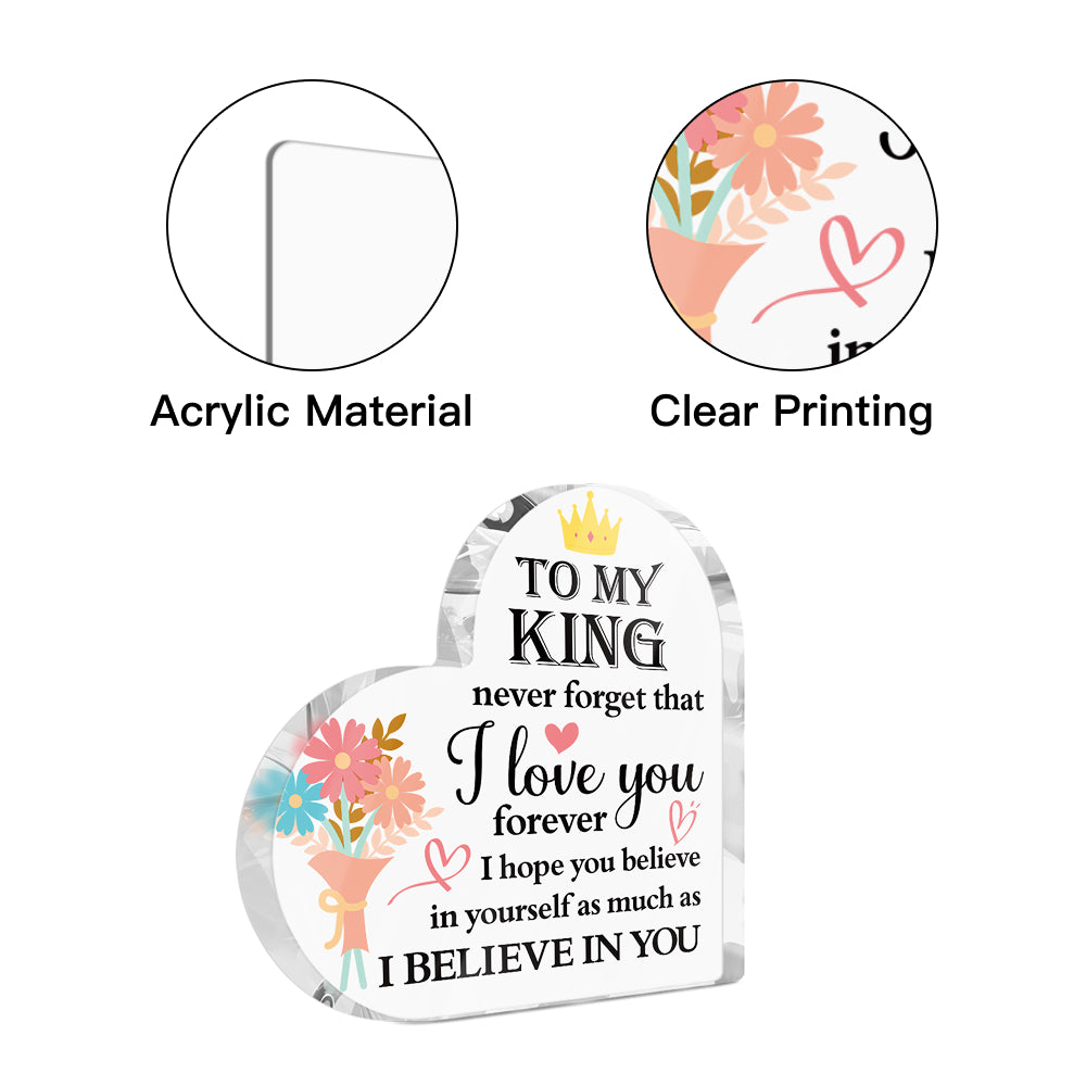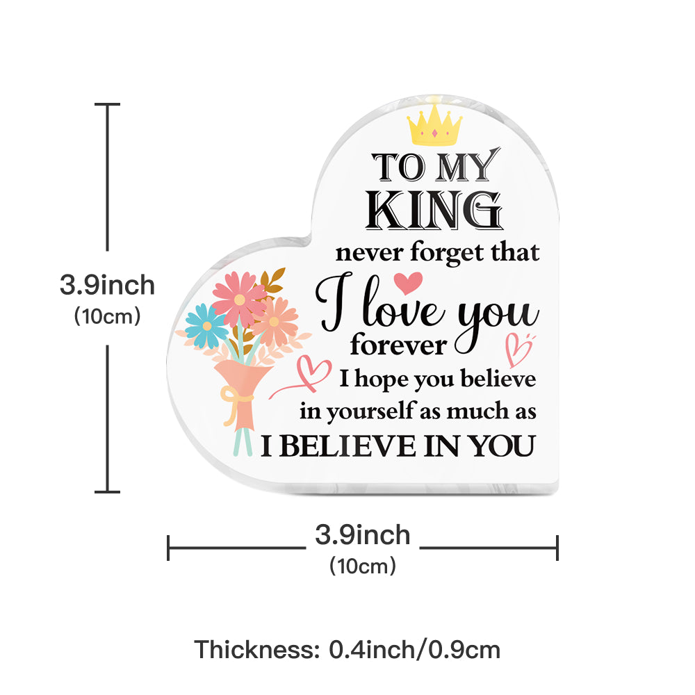 To My King Partner Boyfriend Husband Heart-Shaped Block Acrylic Plaque Gift Free-Standing Sign Keepsake For Boyfriend Husband Partner For Birthday Valentine's Day Anniversary