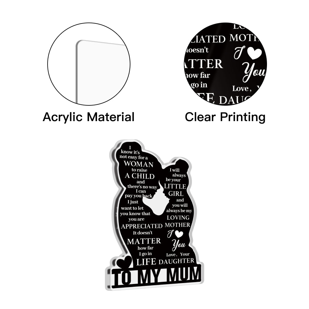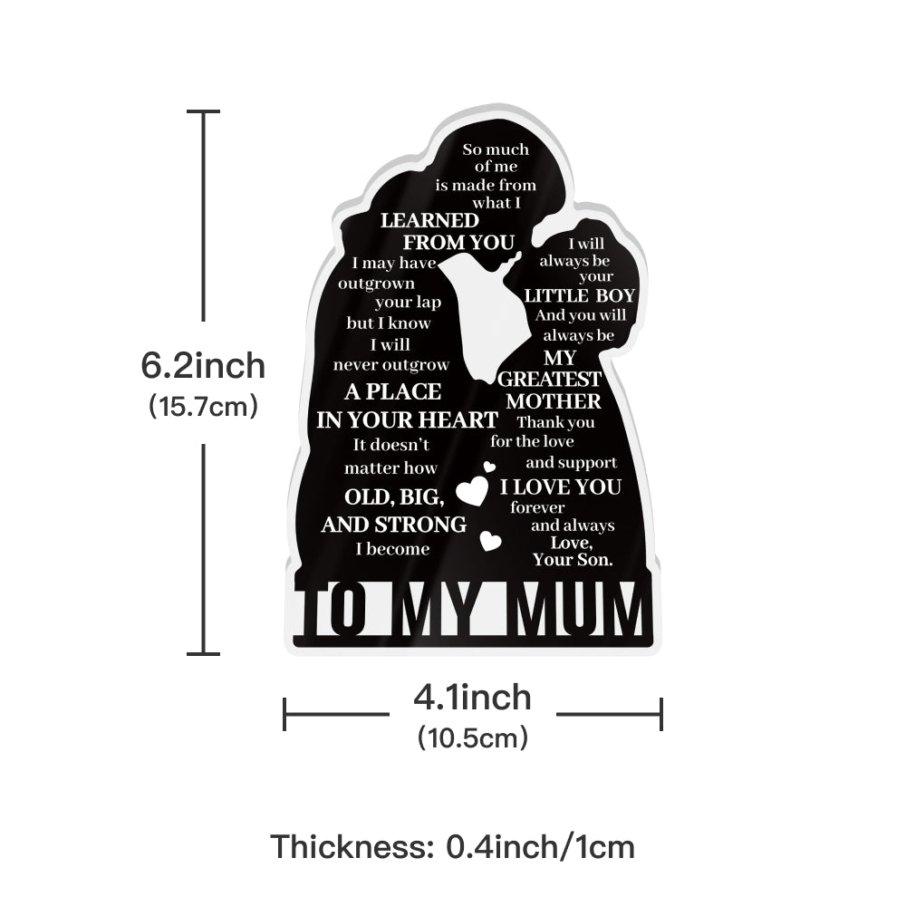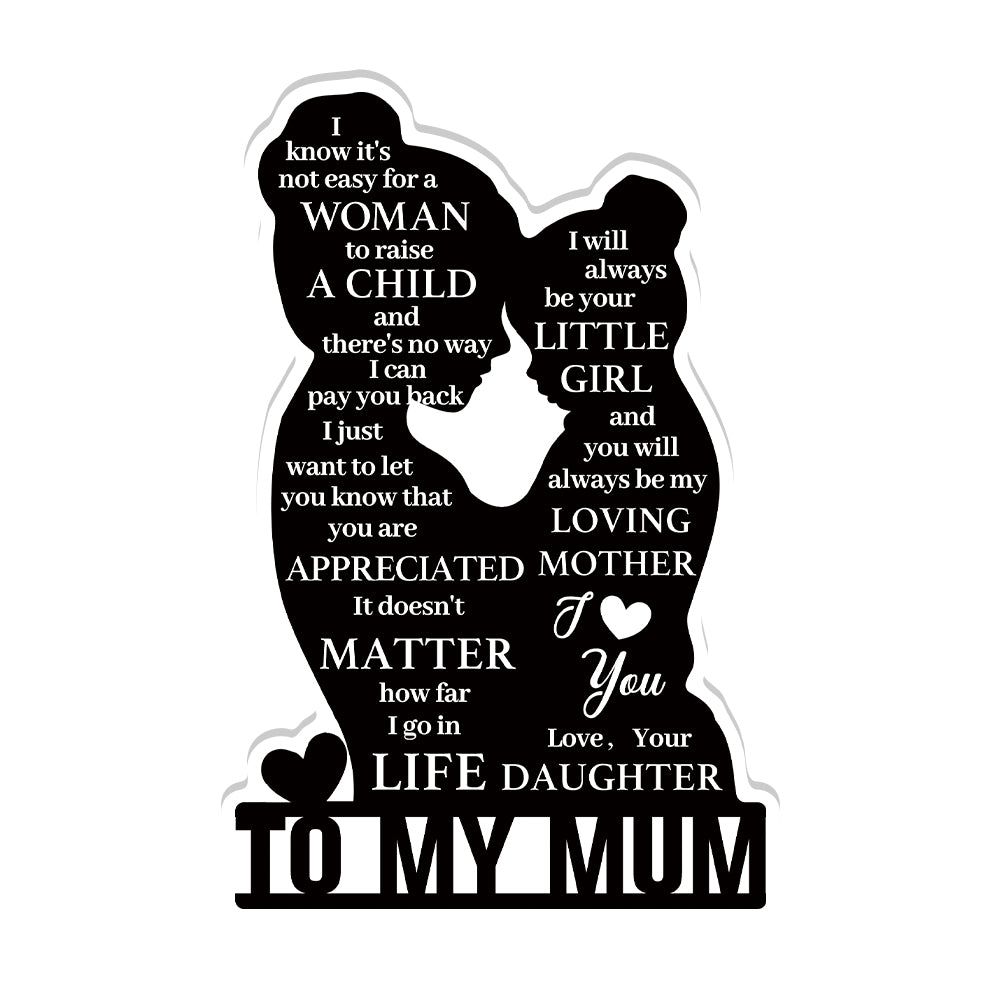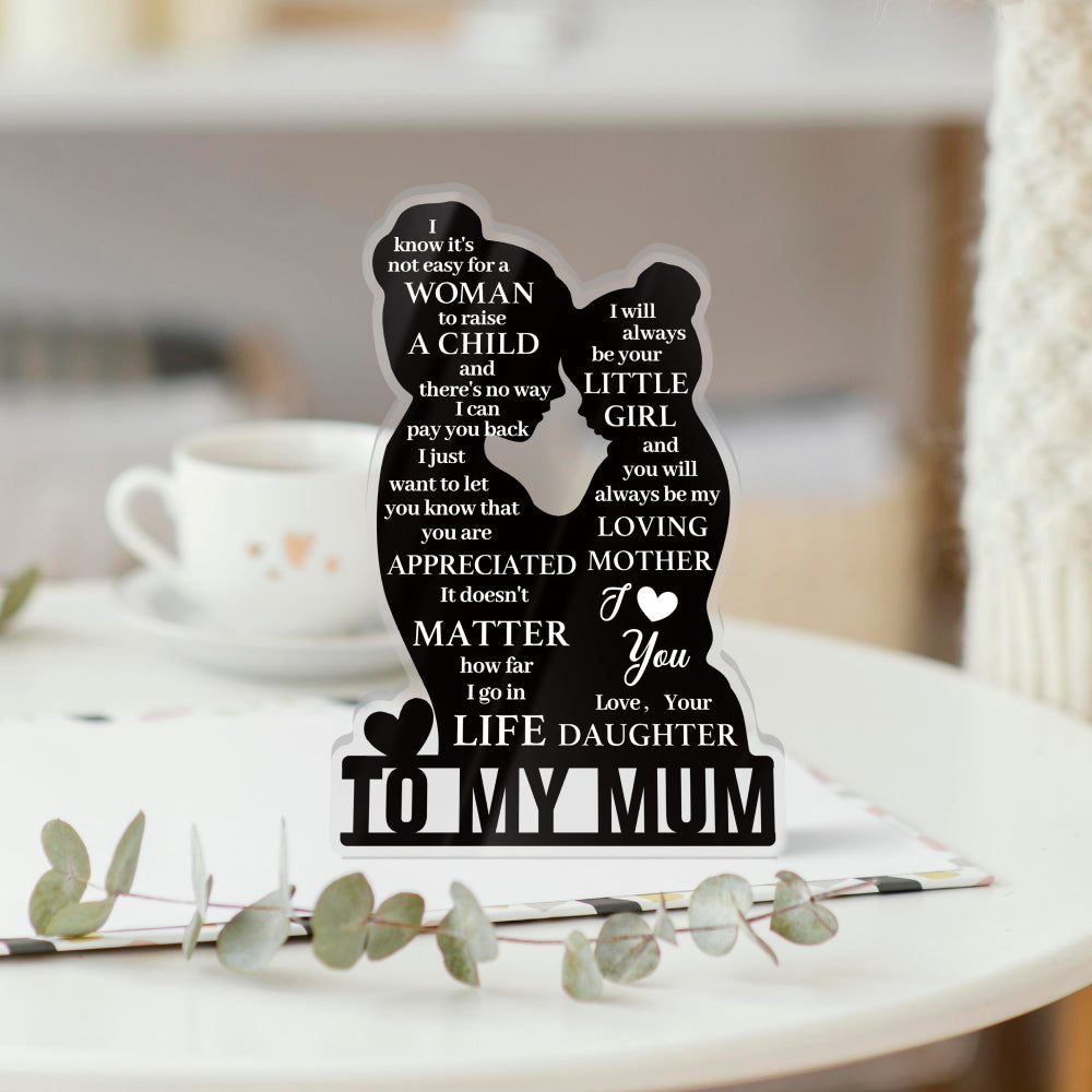 To My Mum Poem Black Silhouette Portrait Acrylic Plaque Block Free-Standing Sign Gift Keepsake For Mum Mother For Birthday Mother's Day Special Occasion